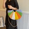 IELGY small fresh rainbow color semicircle portable grass woven bag for women