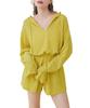 Azura Exchange Oranžová zmačkaná texturovaná volánová halenka s rozparkem u krku a nabíranými rukávy