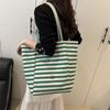 Women's 2024 Large Striped Canvas Tote Bag for Commuting & College Students