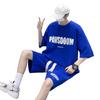2ks/sada Pánská letní tepláková souprava O-výstřih Krátký rukáv Tričko s potiskem písmen Elastický pas se stahovací šňůrkou Široké kraťasy Set Vaflová textura Oblečení