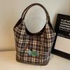 Large Capacity Versatile Plaid Tote Bag Women'S Autumn Cute Dachshund Dog College Student Class Shoulder Bag