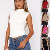 Dámská jednobarevná polopřiléhavá bezrukávová vesta plisované top tričko