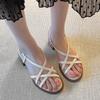 Square head cross strap Roman shoes women's summer wear literary retro woven thick heel sandals