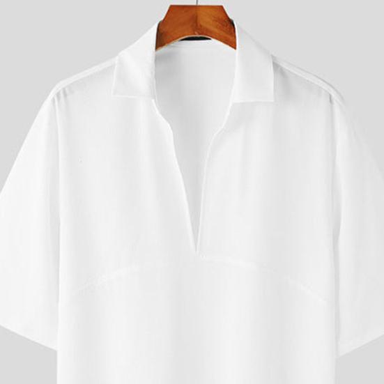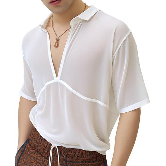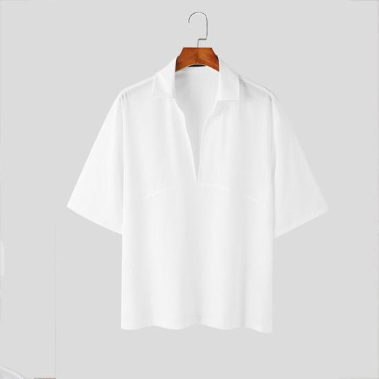 Doplňte svůj ležérní šatník tímto stylovým pánským bílým tričkem. Toto volné tričko, ušité z měkké a prodyšné polyesterové tkaniny, má trendy výstřih do V a krátké rukávy pro módní vzhled.. Všestranný a pohodlný, snadno se kombinuje s tepláky, džínami nebo ležérními kalhotami..