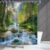 3D Printed Shower Curtain Garden Waterfall Design with Vivid Flowers Rockery Waterproof Bath Decoration for Home Decorations.