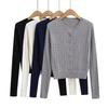 European & American Style Solid Color Cable Knit Cardigan - Round Neck, Single-Breasted, Long Sleeve Top for Women