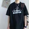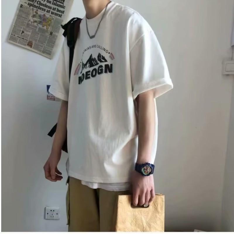 M-8XL Men Oversized Korean Fashion Loose American Vintage mountain range Print Short Sleeve Round Versatile Trend Couple outfit