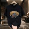 Pánské 100% čistá bavlna letní volný střih s potiskem kresleného vzoru ležérní a pohodlné tričko s kulatým výstřihem a krátkým rukávem