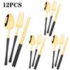 12pcs Black Gold Stainless Steel Dinnerware Set Waist Fork Spoon Chopsticks Tableware Set Mirror Western Kitchen Party Flatware