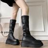 Internet celebrity thick-soled muffin elastic boots women's 2025 autumn and winter Korean version of the new tall tube thin boots knight boots do not
