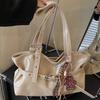 Chic PU Handheld/Shoulder/Crossbody Bag with Bow & Pearl Detail: Crafted from PU with a textured finish, featuring a cute bow and pearl accessory that adds a touch of sweetness and elegance. Designed for handheld, single - shoulder, or cross - body wear, ideal for adding a stylish touch to daily outings, dates, or casual events.