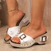 Fashion Office Ladies Buckle Thick Sole Slides Women Rivet Decor Square Toe Slippers Woman Patchwork Non Slip Pu Leather Slides Mujer