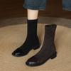 Fashion Suede Elastic Elegant with Low Heels Ladies Mid Calf Shoes Winter 2025 Novelty Sale Y2k Comfortable Goth Women's Half High Boots
