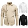 Men's Casual Solid-color Long-sleeved Shirt, Men's Slanted Button Slim Lapel Shirt