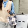 81 woolen plaid bento bag tote bag fresh women walking lunch box small carry bag