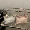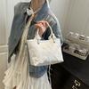Simple Flower Canvas Bag Student Large Capacity Handheld Women's Bag Sundries Storage Hand Carry Small Square Bag