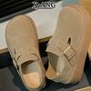 inner height increase thick-soled cowhide version bag head, outer wear half slippers, autumn new one-pedal women's shoes