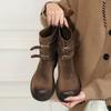 Cowhide version Brown Barn style boots Women's thick heel Martin boots Medium motorcycle boots Western cowboy boots Skinny short boots