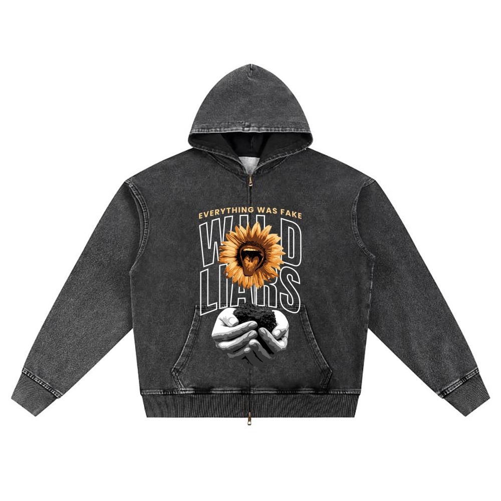 DTG print Knitted Denim Zip-Up Hoodie Wild Liars Brother Print Zipper Hoodies