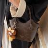 Women's winter new fashion simple solid color texture portable bucket bag daily commute shoulder messenger bag