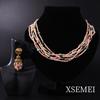 Retro Filigree Agate Glass Tassel Necklace & Pearl Rhinestone Earrings Set