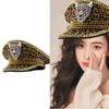 Punk Y2k Beret Hat Hip-hop Flat Top Cap Retro Rivet Leopard Hat for Women