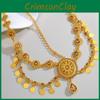 This vintage-inspired headpiece features a geometric design crafted from durable alloy material, Adorned with shimmering imitation diamonds, gold-tone accents, and layered coin embellishments, it offers a striking visual appeal. Suitable for dance performances, fashion events, or cultural celebrations, it adds a touch of elegance to any look. Wipe clean with a soft cloth to maintain its shine.