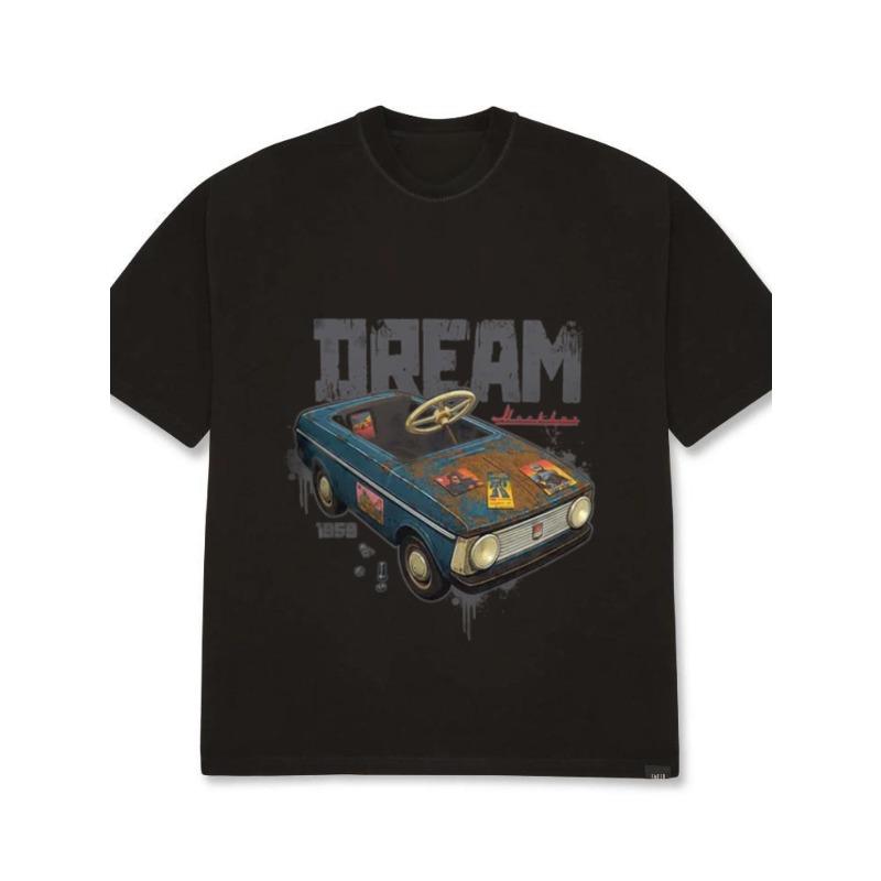 Oversized T Shirt Black Dream Car Graphic Print Streetwear Casual Wear for Men