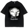 Menswear Ibuprofen Cat Meme T-shirt Print Funny Retro Tee Breathable Comfortable Soft Short Sleeve Street Hip Hop Short Sleeve
