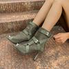 Fashion Buckle Strap Round Peep Toe Women Ankle Boots ArmyGreen Cross Strap Thin Heels Spring Autumn Modern Short Booties