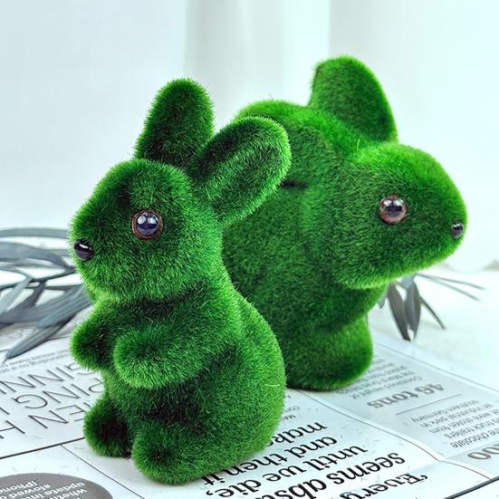 Artificial Moss Bunny Statue Realistic Furry Moss Flocked Rabbit Ornament Standing Foam Rabbit Figurine for Spring Easter Party Patio Desktop Decor