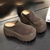 Frosted soft leather muffin thick-bottomed bag head half slippers women wear retro versatile small height-increasing slippers