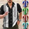 Fashion Business Stripped Splicing Shirt For Men Vintage Casual And Versatile Button Down Bowling Short Sleeve Summer T-Shirt