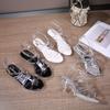 Cross Strap Crystal Transparent Fashion Medium Heel Stiletto High Heel Sandals