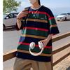 Vintage Japan Style Striped T-shirts Summer Contrasting Colors Men's Clothing Young Style Letter Loose Casual O-Neck Pullovers
