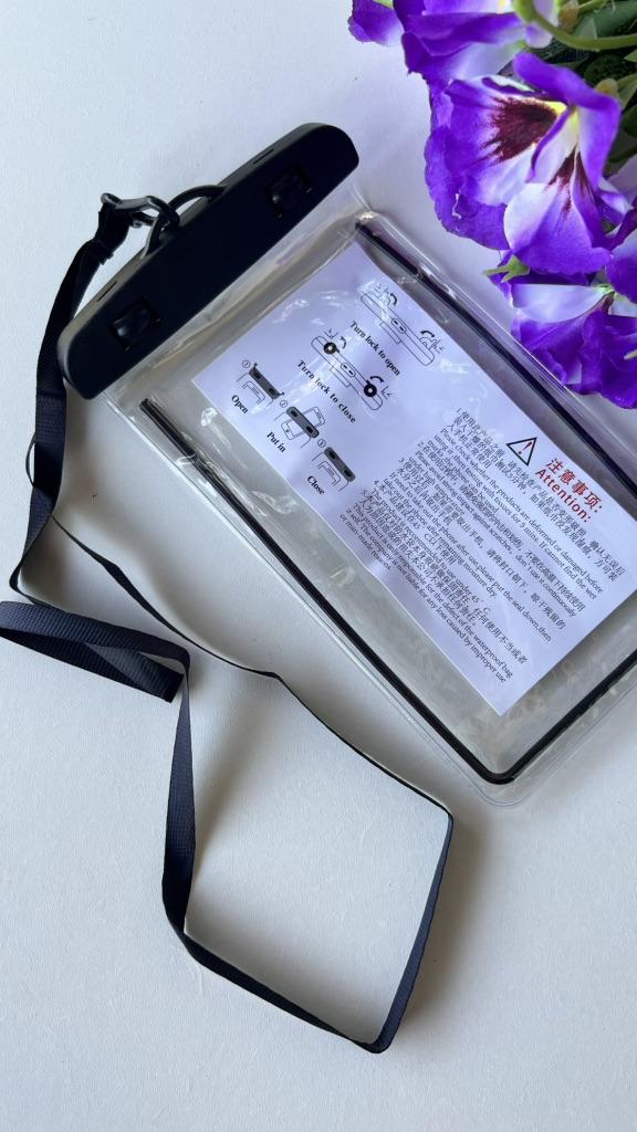 Universal Waterproof Pouch for Phones The case is suitable for protecting the phone while swimming, Waterproof with belt Made of plastic Good quality product The product arrived to me with fast and secure delivery 📦