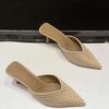 Fashion Summer New Baotou Cool Mopping Fashion Pointed Toe Shallow Mouth Pearl One-line Strap Versatile Simple Square Heel Half Slippers