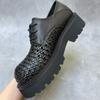 Fashion 2024 Spring Autumn New weave British Style Heightening Effect Leather Shoes For Women Solid Black Business Causal Dress Fashion