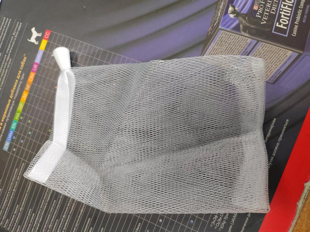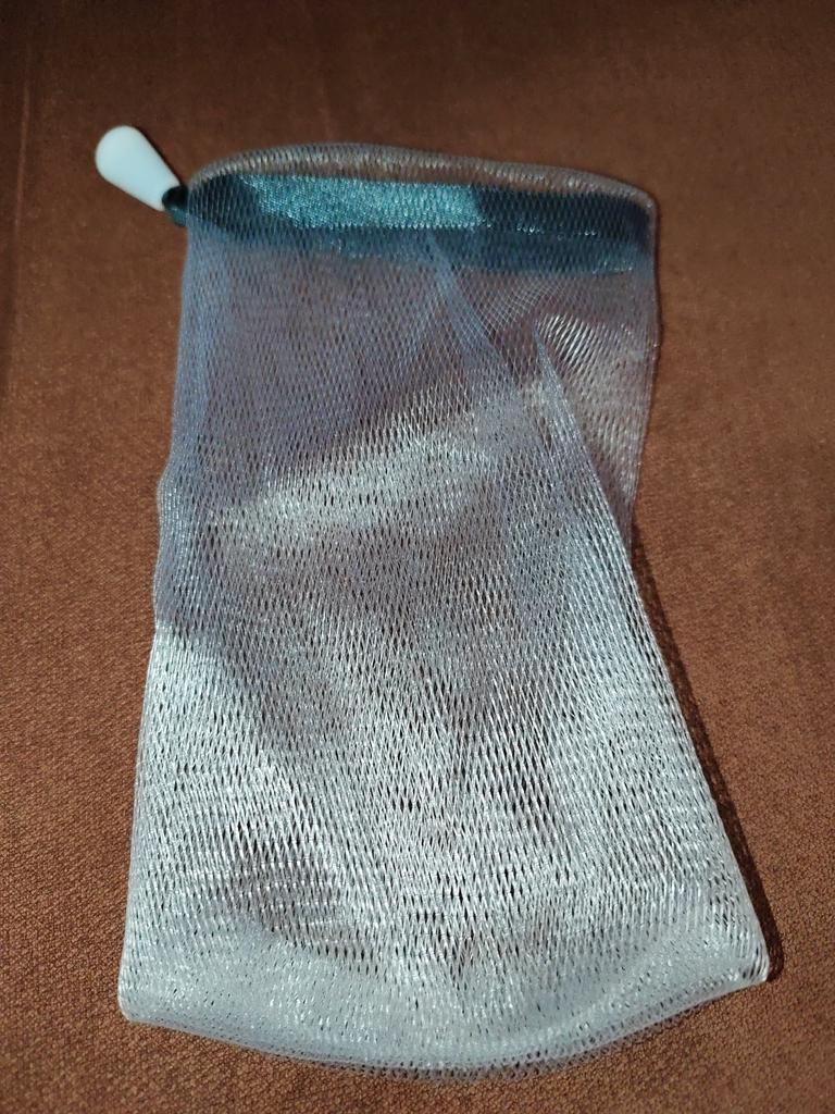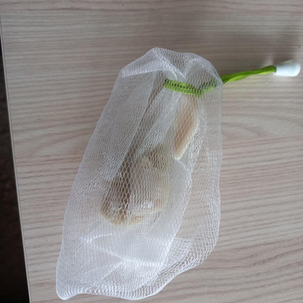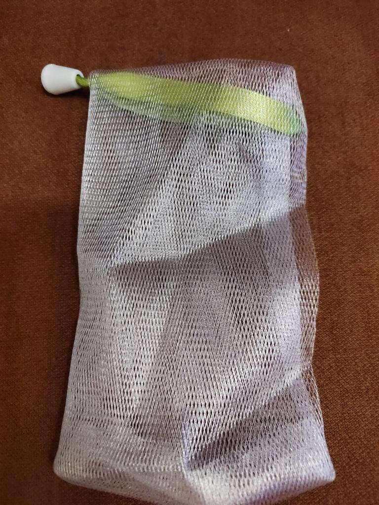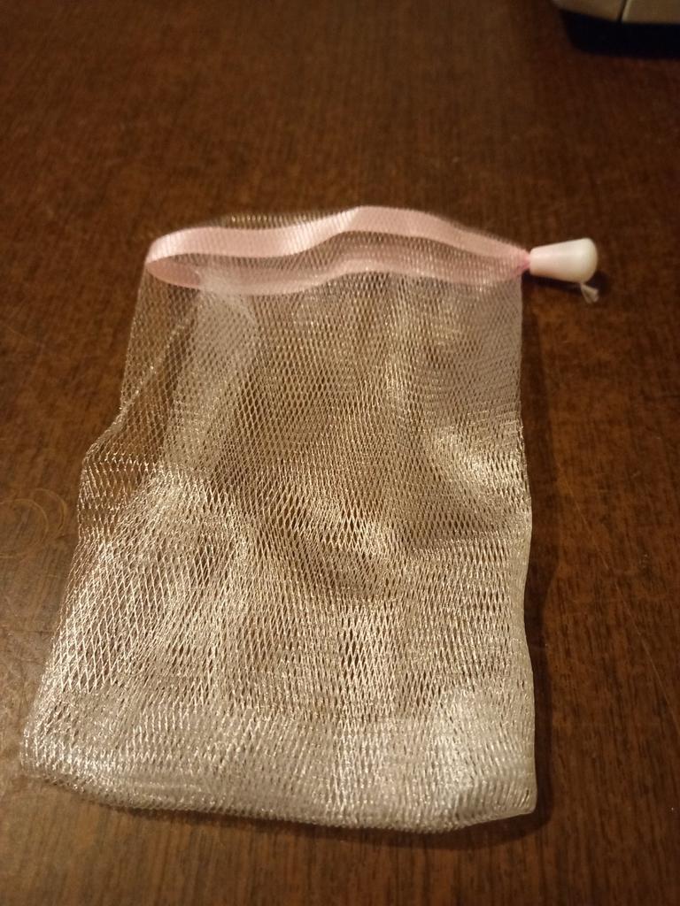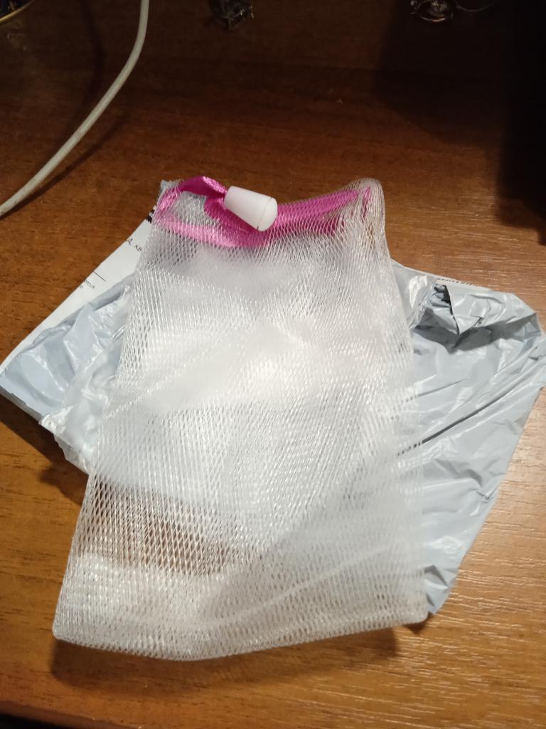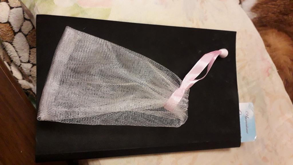 Soap bag, very convenient. Soap does not get wet in it like in a soap dish. I have one soap for whitening facial skin, the second for hair growth. While I was waiting for this bag, I made it myself from a washcloth.