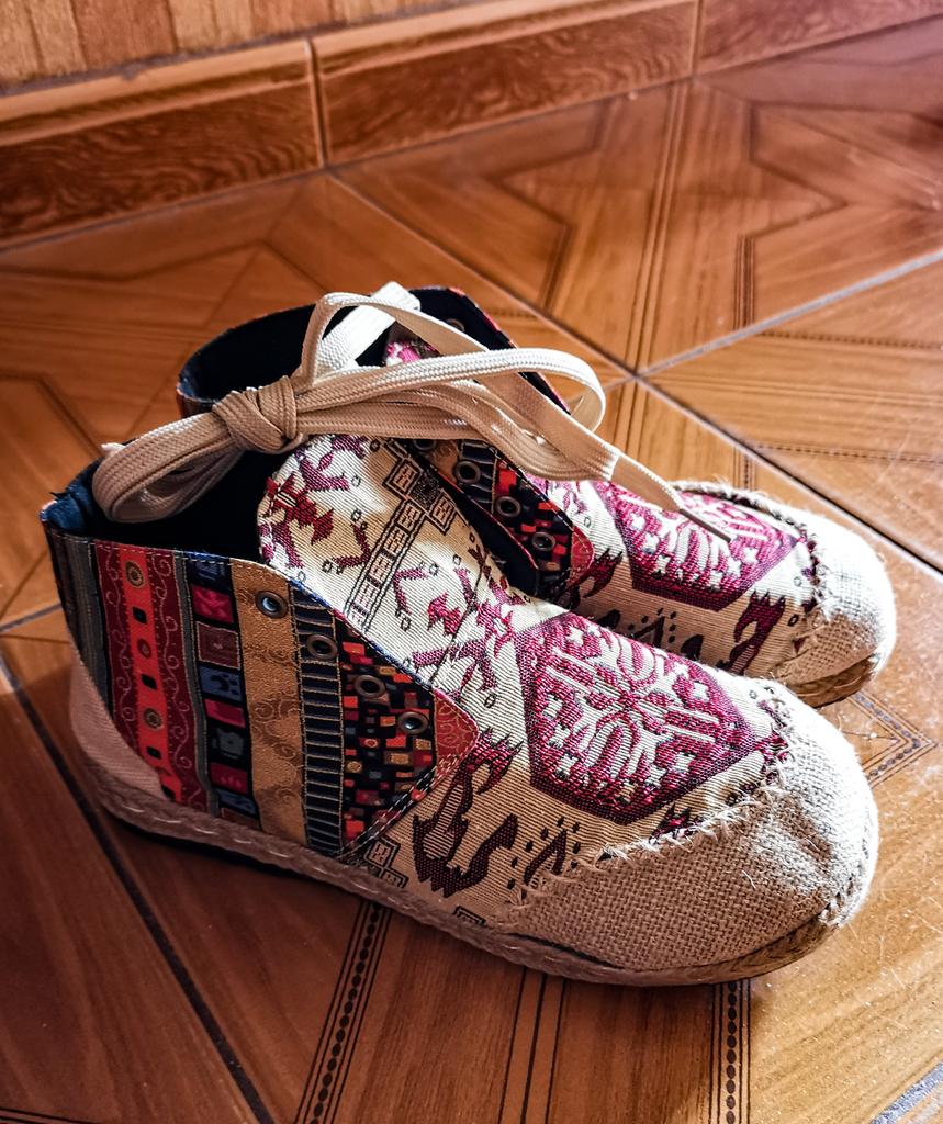 Lace-up Cotton Fabric Casual Flats Loafers Linen Hemp Round Toe Ethnic Style Fashion Cute Shoes
