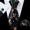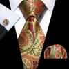 Barry.Wang Floral Ties for Men Woven Paisley Wedding Necktie Handkerchief Cufflinks Formal Casual Set