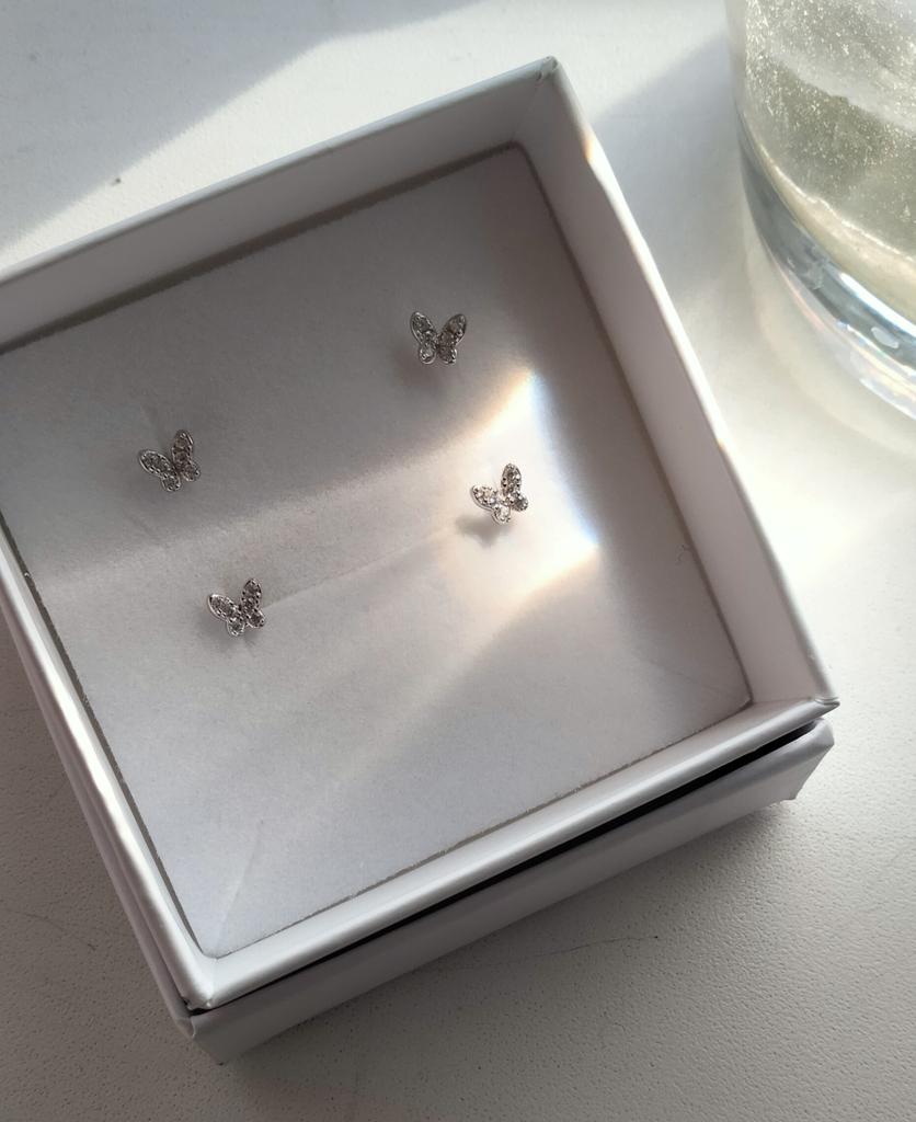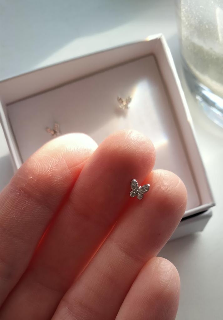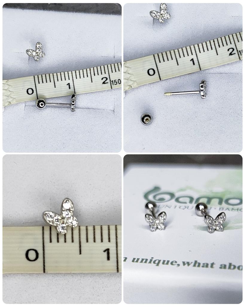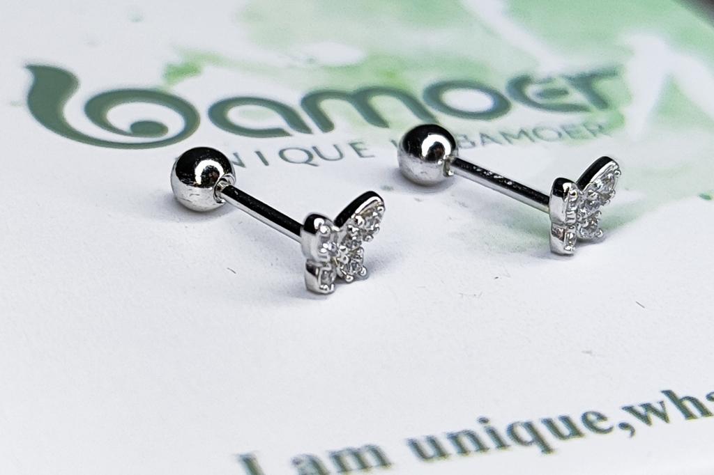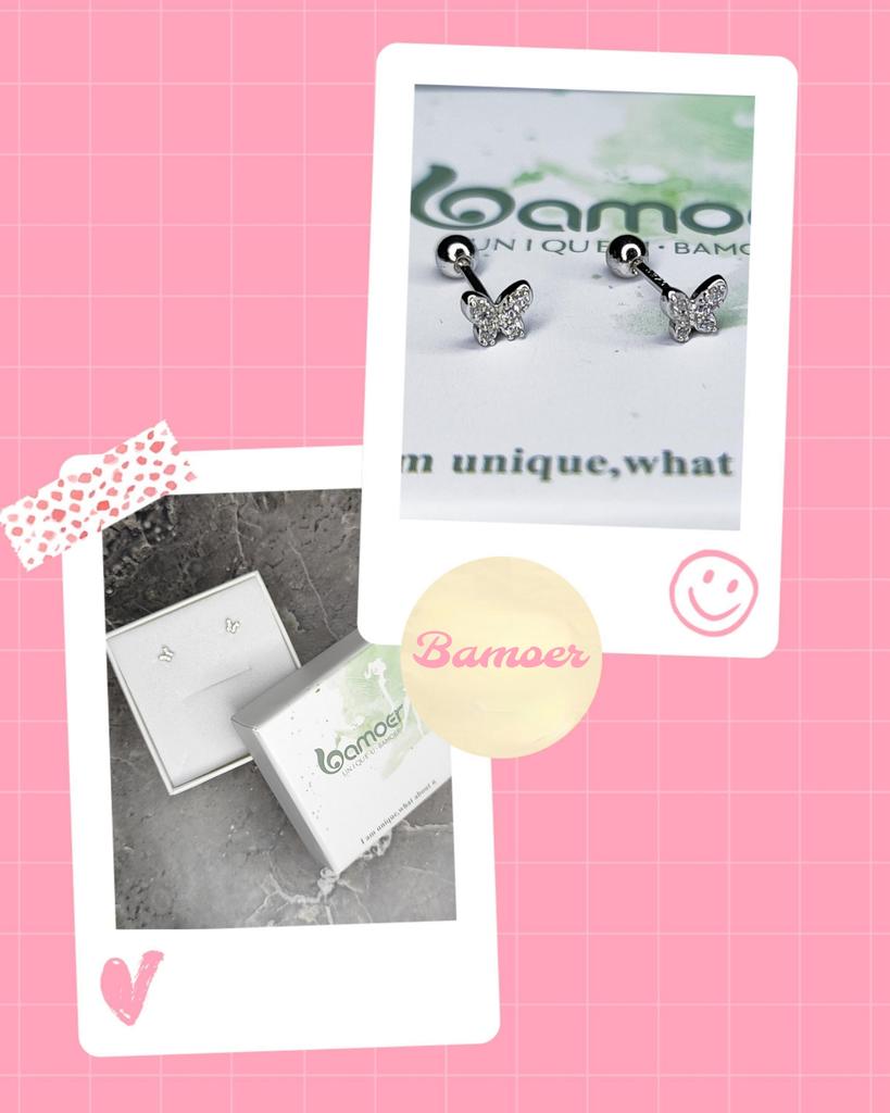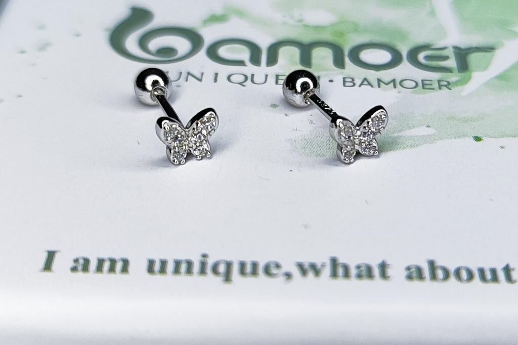 BAMOER 925 Sterling Silver Plated Platinum Cute Butterfly Stud Earrings, Handmade 5mm Dainty CZ Hypoallergenic Earrings