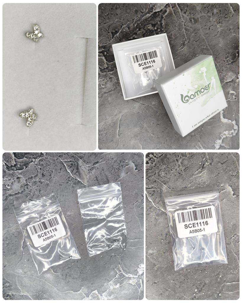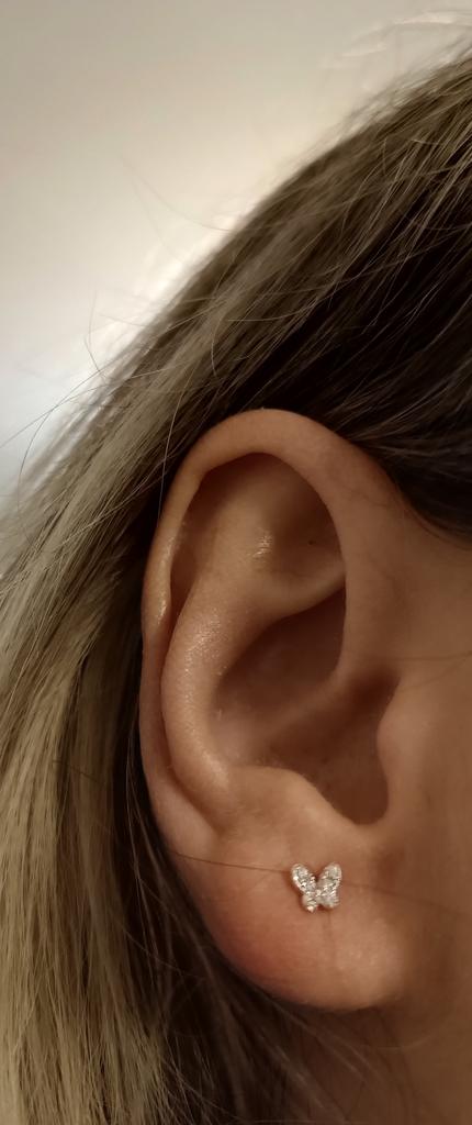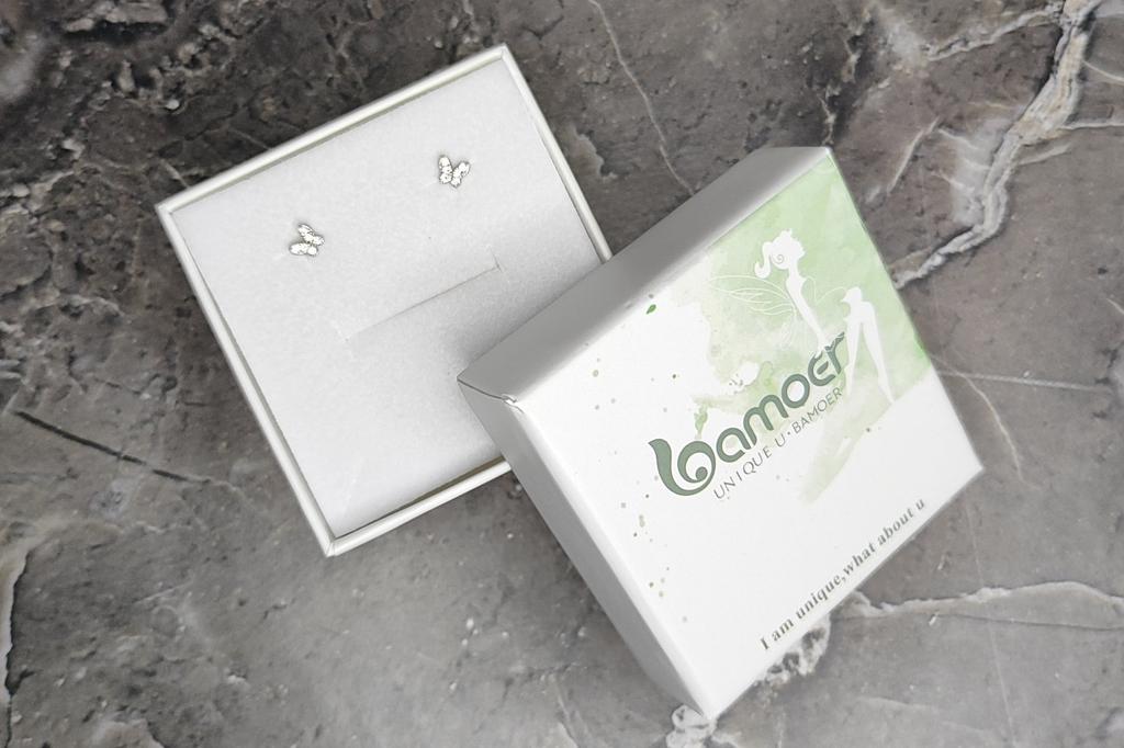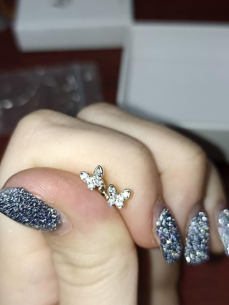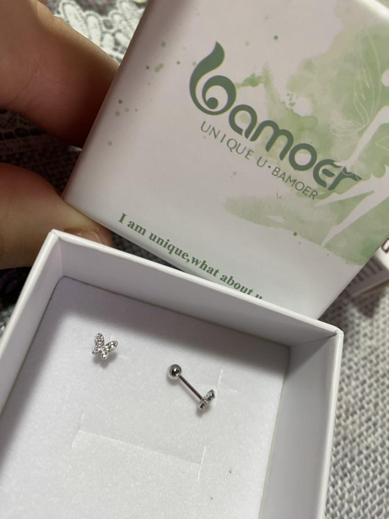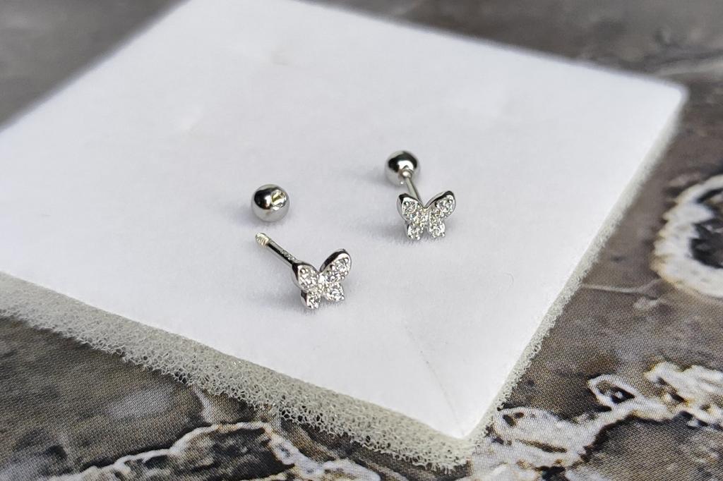 BAMOER 925 Sterling Silver Plated Platinum Cute Butterfly Stud Earrings, Handmade 5mm Dainty CZ Hypoallergenic Earrings