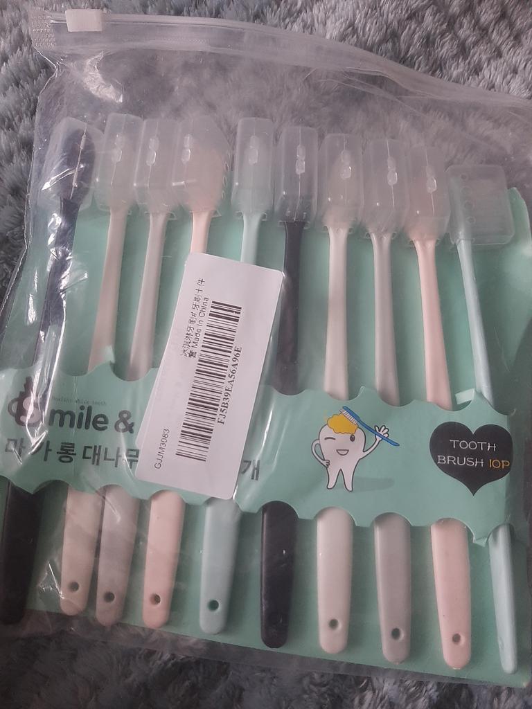 Delivery to Ukraine 3 weeks. 10 small thin light plastic brushes, each of which is in a separate case. More, probably, children's, but also quite good for adults. I liked the product, I recommend it. Thanks to the seller and JOOM.