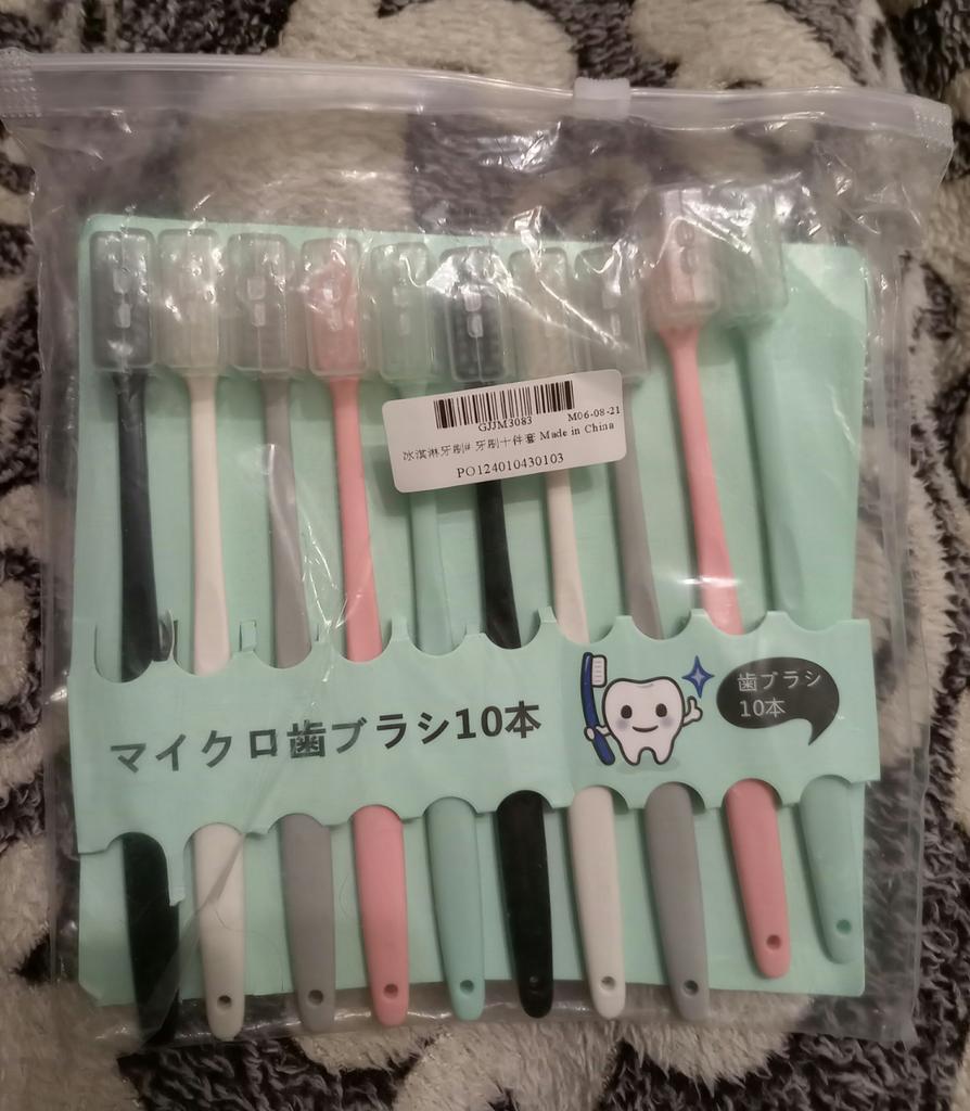 The set includes 10 brushes. Each is in its own case, which is convenient because you can take it with you on the road. The brush is suitable for both adults and children. Pleasant to the touch. I am satisfied with the purchase. I recommend