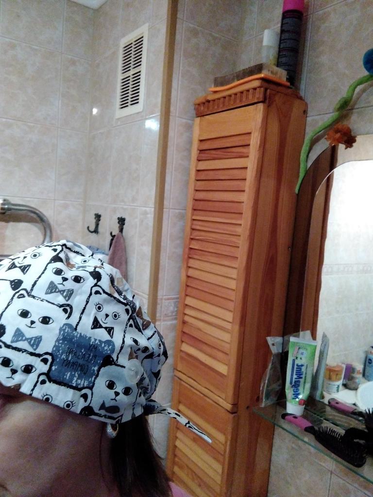 I'm already buying my 4th such cap, only in different colors. It sits very well on the head when working in the garden at the dacha, doesn't slip onto the forehead, doesn't twist, as there is a button and a tie at the back.