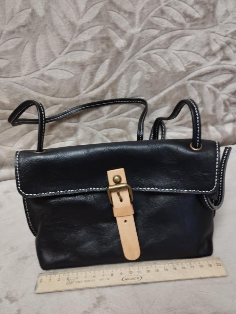 Smells strongly of leather, after 30 minutes my nose was blocked. The bag is very small, the strap is attached through holes by tying knots. Two separate zippered compartments. No internal pockets. I can't imagine how to use it. It's a shame, it looks beautiful, but functionally it's inconvenient.