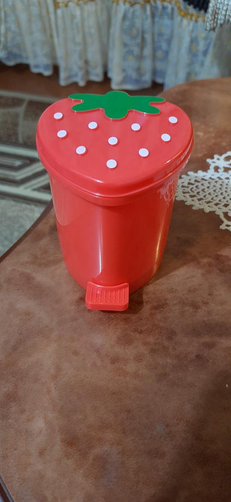 Mini Trash Can with Lid Plastic Trash Basket for Home Bedroom Office Desktop Garbage Storage Box Strawberry Container
