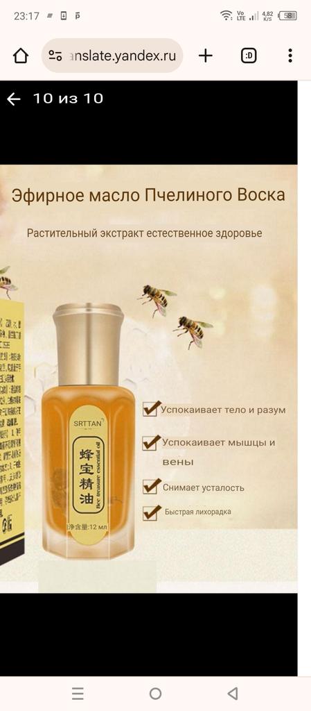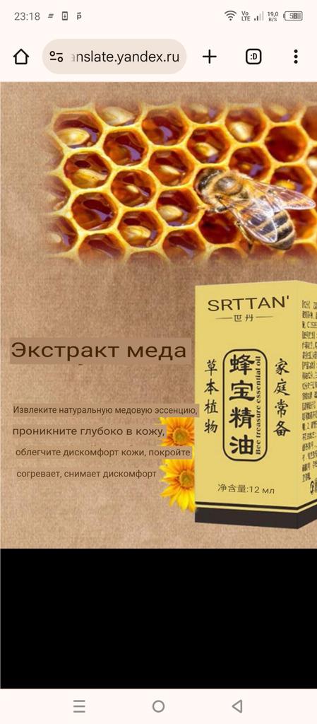 I received my order, bee venom oil. When I try this oil, I will definitely write. In the meantime, thank you to the seller and Jum. As promised, I am adding a description. A very pleasant smell of an easily rubbed-in product, but not immediately, later relief is felt in my case, it's the joints (my dear ones). In my opinion, this is an excellent means of alleviating the painful effect. I recommend it only for those who are not allergic to bee products. Good health to everyone!