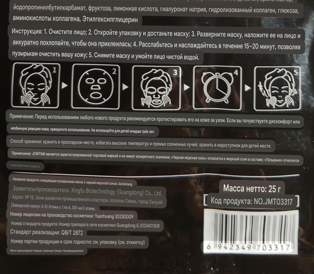 1pc Black Sea Salt Pure Moisturizing Bubble Facial Mask Deep Cleansing Oil Control Skin Rejuvenation